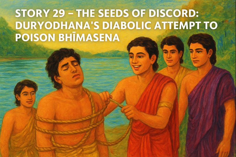 After the arrival of the Pāṇḍavas into Hastināpura, a quiet transformation began to settle over the Kuru kingdom. The young princes - sons of Pāṇḍu and Dhṛtarāṣṭra - played together, studied together, and grew together within the sheltering walls of the great city. Yet beneath that outward calm, unseen currents of jealousy and insecurity were slowly rising. This episode narrates the early seeds of discord - the moment when Duryodhana, driven by envy and fear, attempted to end Bhīmasena’s life.